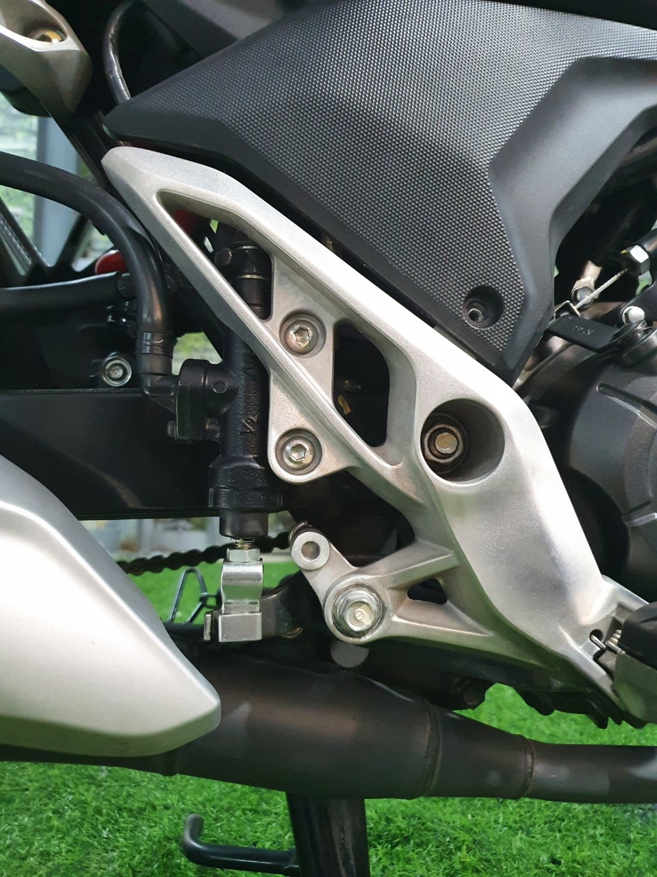 Trừ bản đen nhám, hầu hết các phiên bản Winner X đời đầu đều sơn ốp pô màu bạc, đi một thời gian va quẹt tạo nhiều đường trầy trụa rất gớm nên mình đã quyết định tự spa cho em nó, hì hục đánh nhám rồi phun sơn đen mất nửa ngày, kết quả như trong ảnh.